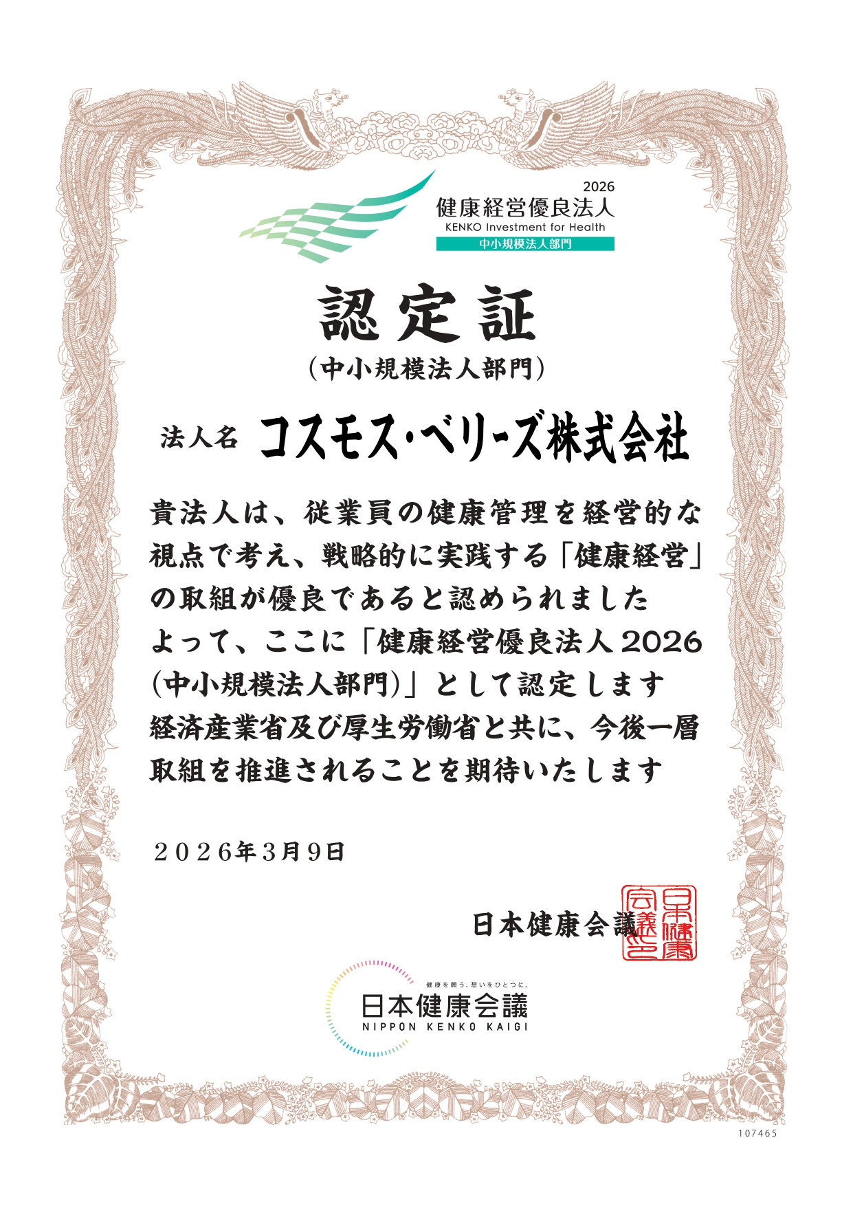 このたび当社は、昨年度に続き「健康経営優良法人2026(中小規模法人部門)」に認定されましたので、お知らせいたします。