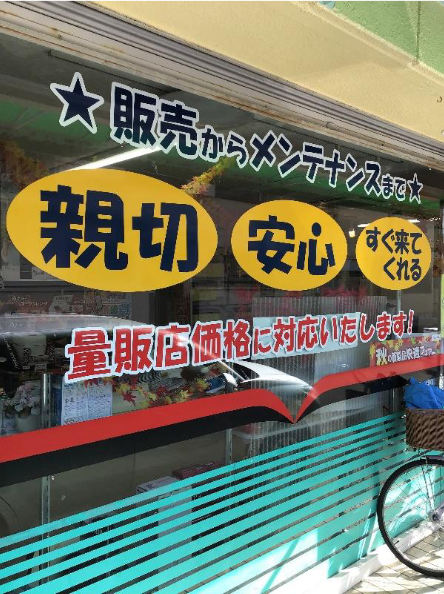 加盟後は店舗正面のガラス窓に、「量販店価格に対応いたします!」というキャッチフレーズを前面に打ち出した。街の電気店は量販店に比べて価格が高いというイメージを払しょくしたかったと話す。